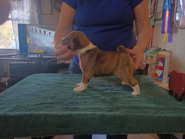 Am/Cdn Ch. Klassic's Classy Chassis II (Poppy) is due to whelp around Dec. 14. She should have reds and brindles. Poppy has her health chic#. Poppy's son Casey is in Spain and has five titles to his championship. Her daughter Klassy finished her championship in five shows and is living in the UK with the Hallams. Timer, the brother finished in a few shows, with a breed win over specials and is here at Klassic.
